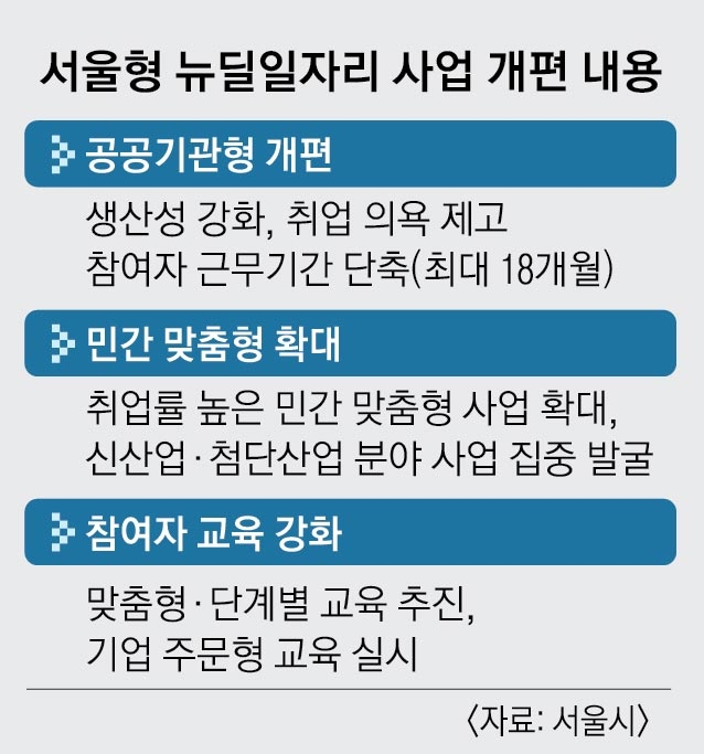 시는 이런 내용의 ‘서울시 공공일자리 사업 개편 기본계획’을 만들어 내년부터 실행한다고 5일 밝혔다.