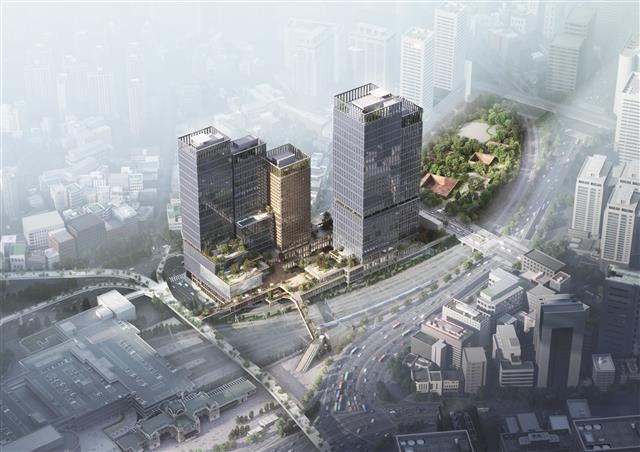서울역 북부에 들어설 복합단지(조감도)는 지하 6층~지상 38층 높이로 업무(사무소·오피스텔 414실), 관광숙박(호텔), 판매, 문화 및 집회시설 등 복합 건축물로 지어진다. 업무시설 2개동, 오피스텔 1개동, 호텔과 오피스텔로 구성된 2개동 등 총 5개 동이다. 특히 철도 위를 지나 서울역 광장으로 이어지는 입체적 공공보행통로를 만든다. 철도로 단절된 동~서 구간은 물론 서소문역사공원까지 연결해 공공성을 강화한 열린 공간으로 만들겠다는 구상이다. 내년 상반기 건축허가를 거쳐 2027년 준공될 예정이다.