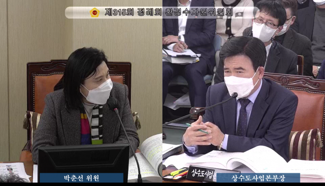 서울특별시의회 환경수자원위원회 소속 박춘선 의원(강동3·국민의힘)은 지난 지난 7일 서울특별시의회 제315회 정례회 행정사무감사에서 상수도사업본부의 아리수 음용률 개선 노력이 미진함을 지적하고, 특단의 개선책을 마련할 것을 주문했다.