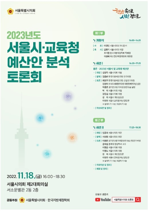 서울시의회, ‘2023년도 서울시 · 교육청 예산안 분석토론회’ 개최