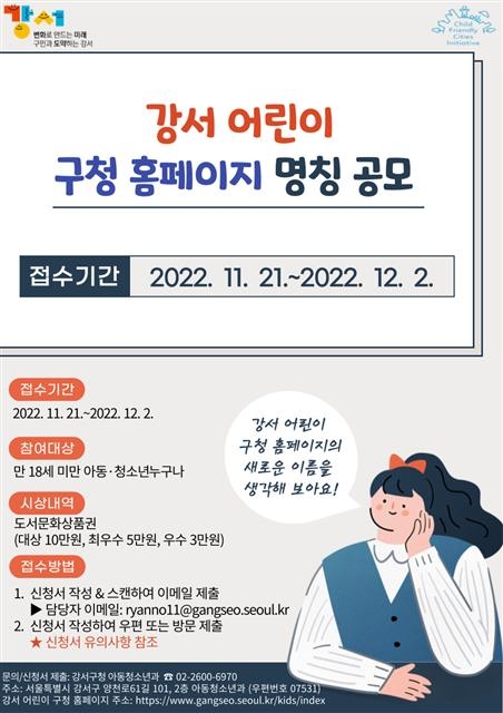 구 관계자는 “이번에 개편하는 강서 어린이 구청 홈페이지는 아동과 청소년에게 다양하고 유용한 정보를 효과적으로 전달할 것”이라고 말했다.