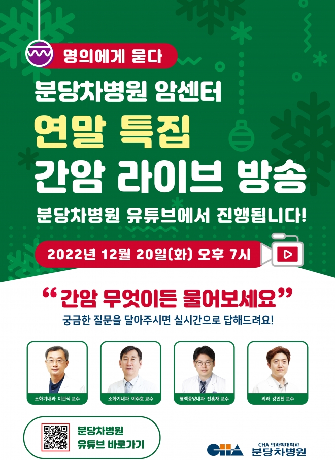 분당차병원 20일 ‘간암, 무엇이든 물어보세요’ 온라인 방송