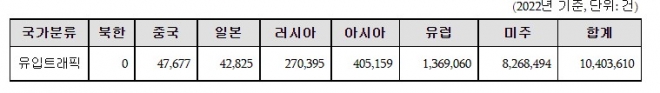 이번에 서울교통공사가 제출한 2022년 1월~9월 국가별 해킹 공격 시도 현황에 따르면 미주권 82만 건(79%)으로 가장 많았다. 반면 중국과 북한은 각각 약 4만8천 건, 북한 0건으로 나타났다.