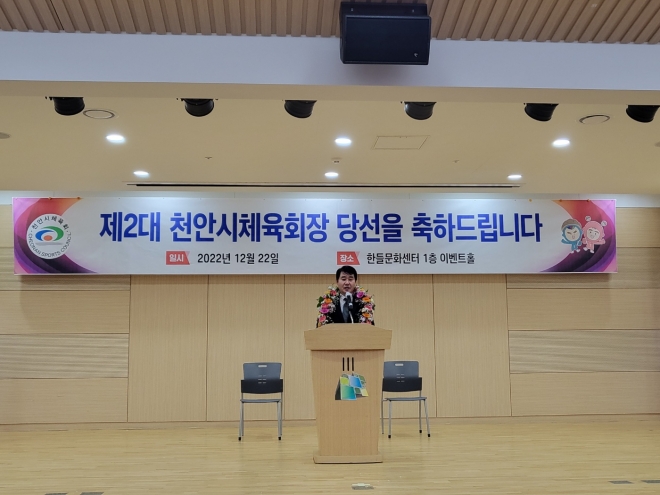 3일 천안시체육회 선거운영위원회에 따르면 22일 오후 천안 백석동 한들문화센터에서 실시된 천안시체육회 선거결과 전체 선거인단 261명 중 224명이 투표에 참여한 가운데 기호 2번 한남교 후보가 132표를 득표해 기호1번 이성만 후보에 승리했다.