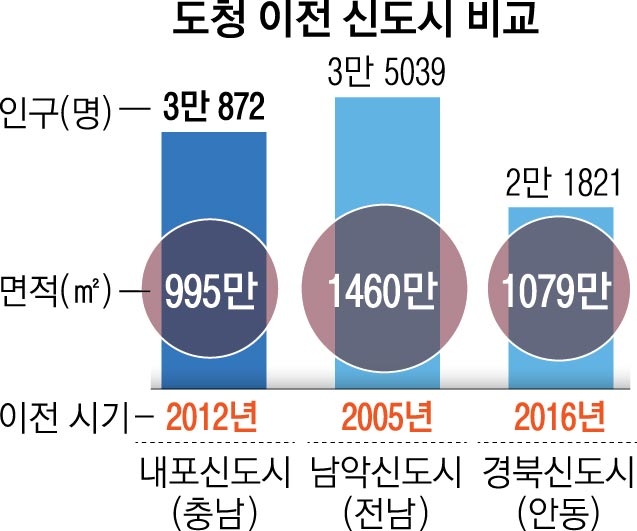 이의강 도 주무관은 “전남도청이 2005년 11월 무안으로 이전한 남악신도시의 현재 인구 3만 5039명, 경북도청이 2016년 2월 옮긴 안동 경북도청신도시 2만 1821명과 비교해 인구 유입 속도가 빠른 편”이라며 “충남도청이 허허벌판인 농촌으로 이전했는데도 목포와 안동이라는 큰 도시를 낀 남악·경북신도시보다 인구 증가 속도가 빠른 것은 수도권과 가까운 이점이 작용한 것으로 보인다”고 말했다.