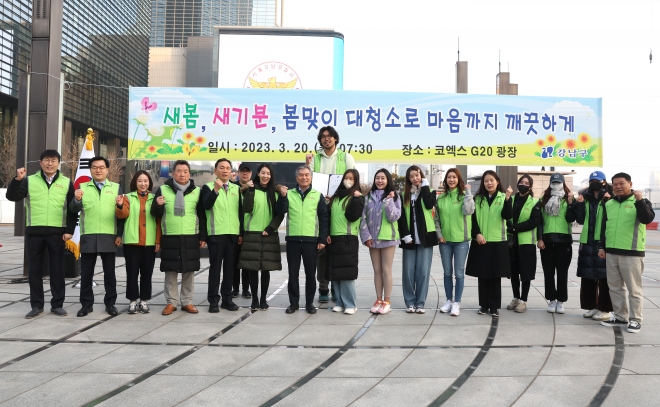 이날 행사는 봄을 맞이해 거리의 제설제와 미세먼지 등 묵은 때를 제거하고 쾌적한 생활환경 조성을 위해 강남구 공무원과 구민의 참여로 진행됐다.