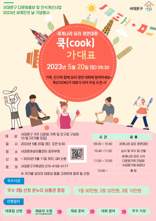 경연 대회를 마친 후에는 모든 참가자가 요리를 맛볼 수 있는 시식 시간과 ‘서대문구에 바란다’를 주제로 하는 다문화가족 간담회도 이어진다. 이성헌 서대문구청장은 “이번 요리 경연 대회가 결혼 이민자들의 자국에 대한 자긍심을 높이고 지역 사회 내 다문화 수용성을 높이는 계기가 되기를 기대한다”고 말했다.