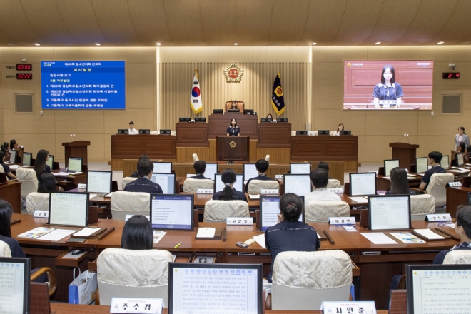 경상북도청소년의회 교실은 2014년에 처음 도입해 그 동안 도내 61개 학교, 3700여명이 체험했으며, 미래의 유권자인 도내 초·중·고등학생들이 1일 도의원이 되어 도의회 본회의장에서 의원의 의정활동과 민주적 의사결정과정을 직접 체험하는 프로그램이다.