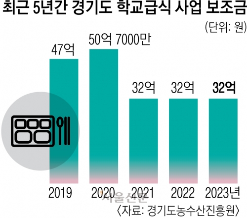 경기도는 최근 5년간 학교급식 사업을 위해 2019년 47억원, 2020년 50억 7000만원, 2021~2023년 32억원씩 보조금을 지급했다. 보조금은 주로 원물 손실 보상, 인건비 등에 쓰였다. 이전과 같은 민간 위탁 사업 형태라면 들어가지 않았을 비용이다.