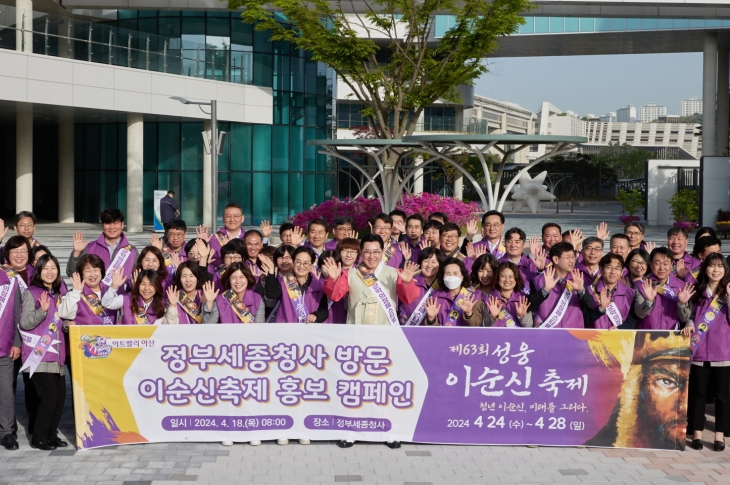 충남 아산시는 박경귀 시장과 공직자들이 18일 정부세종청사를 찾아 오는 24일 개막하는 ‘아트밸리 아산 제63회 성웅이순신 축제’ 홍보캠페인을 진행했다고 밝혔다.