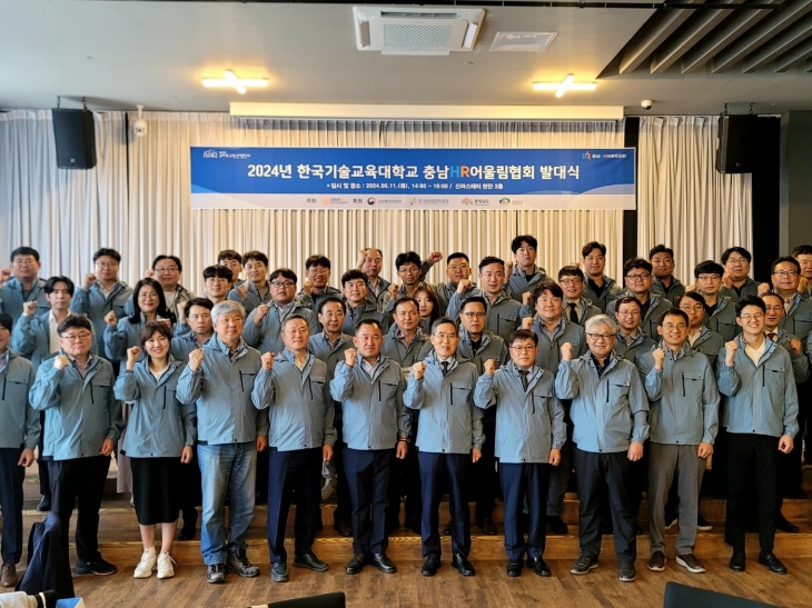 한기대는 스마트제조고급인력양성사업단이 11일 40여곳 지역 우수 중견·중소 기업체 인사담당 임원과 실무자를 비롯해 충남도, 천안시, 아산시, 한국산업단지공단, 고용노동부 천안지청 등 관계자 100여명이 참석한 가운데 ‘충남HR어울림협회 발대식’을 열었다.