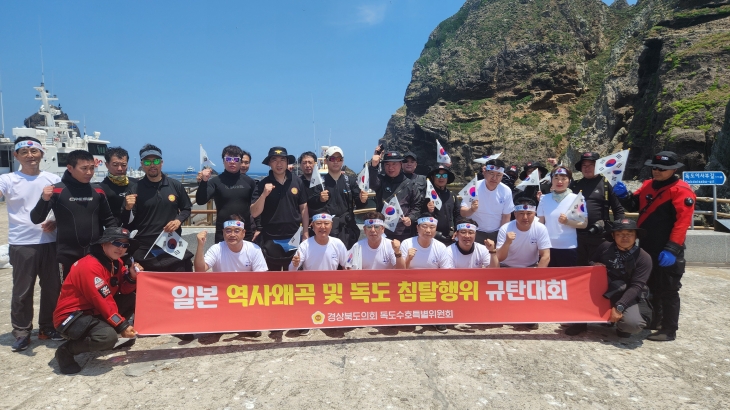 13일 오전, 울릉도 사동항에 도착하자마자 곧바로 독도로 이동하여 매년 반복되는 일본 정부의 역사 왜곡과 독도침탈 야욕을 규탄하는 성명 발표와 함께 조용하면서도 확고한 독도 수호 의지를 다지는 차원에서 독도 바다 일원에 대한 정화활동을 했다.