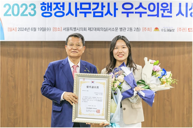 수도권일보·시사뉴스 행정사무감사 우수의원상은 매년 철저한 준비와 전문적 식견을 갖고 참신한 정책을 제안한 의원을 선정해 수여하는 상으로, 편집국 기자와 외부 필진 등 108명의 선정위원이 2023년 행정사무감사와 의정활동 등을 종합적으로 고려해 수상자를 선정하고 있다.