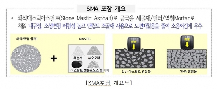 아파트 주변 380m 구간 7억원 투입해 저소음포장(SMA포장) 공법 시행