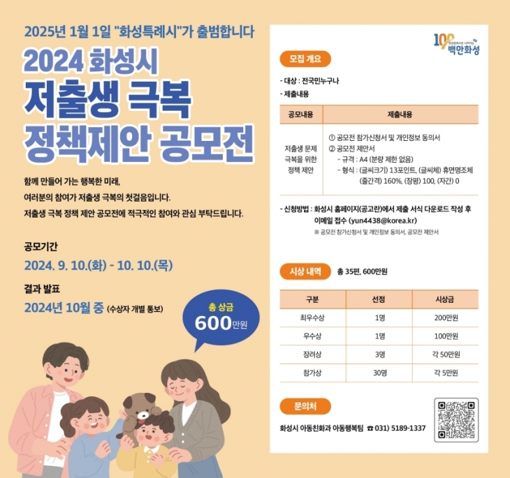 화성시, 저출생 극복 정책 제안 공모···최우수상 2백만 원