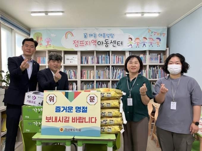 김창혁 경북도의원은 12일 추석을 맞아 구미의 열린지역아동센터와 점프지역아동센터를 방문해 경상북도의회에서 준비한 위문품을 전달하고 시설 관계자들을 격려했다.