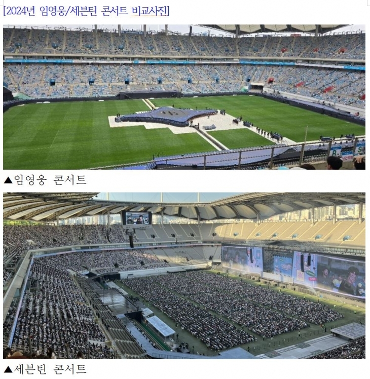 반면 임영웅 콘서트는 그라운드석 판매가 없었으나 그라운드 전면에 걸쳐 무대조립이 있었다. 이 부분이 잔디훼손과 경기력에 어떤 영향을 미쳤을지는 별도로 평가해봐야한다는 주장이다.