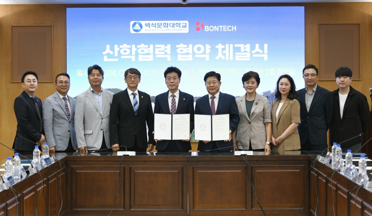 백석문화대학교(총장 송기신)는 25일 방사선 의료 장비 제조회사 ㈜본테크와 방사선 분야 전문성 향상 등을 위한 산학협력 협약을 체결했다.
