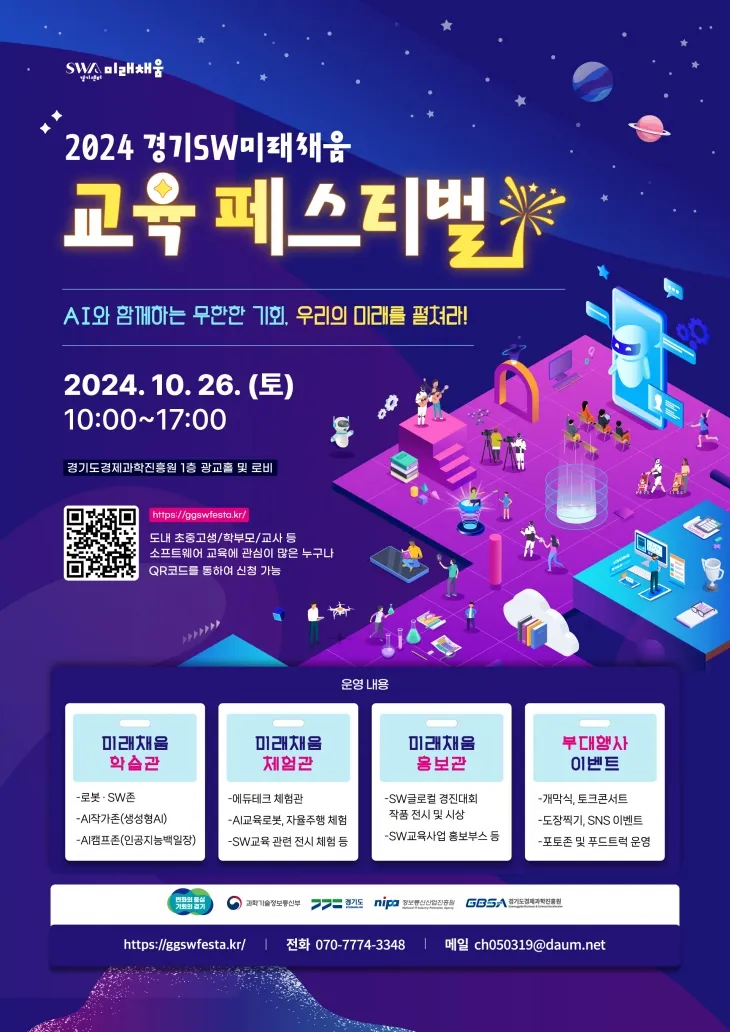 강성천 경과원장은 “이번 페스티벌은 청소년들에게 SW와 AI 기술의 실제 활용을 보여주고 미래 가능성을 탐구하는 기회를 제공할 것”이라며 “가족 간 코딩 활동으로 세대 간 디지털 격차도 줄일 수 있을 것”이라고 밝혔다.