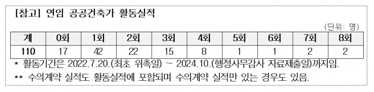“연임된 공공건축가 81명 2회 이하 활동, 실적에는 수의계약 실적도 포함”