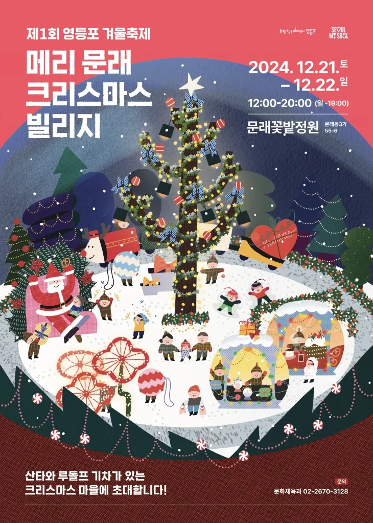 서울 영등포구가 크리스마스를 맞아 21일부터 22일까지 문래동 꽃밭정원에서 ‘메리문래 크리스마스 빌리지’(포스터) 겨울 축제를 연다고 19일 밝혔다.