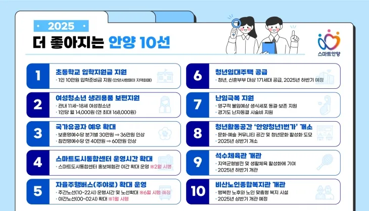 안양시, 초등 입학지원금 지원 등 ‘2025년 더 좋아지는 안양 10선’ 선정
