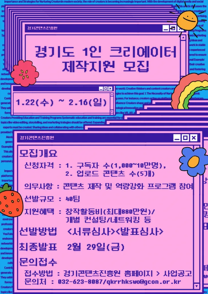 경기도와 경기콘텐츠진흥원이 전업 크리에이터(온라인 영상 창작자)를 육성하는 ‘2025 경기도 1인 크리에이터 제작지원’ 사업 참여자를 오는 16일까지 모집한다.