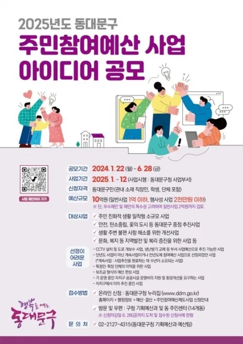 서울 동대문구는 내년 예산 편성을 위한 올해 ‘주민참여 예산사업 아이디어 공모(포스터)’를 오는 5월 30일까지 진행한다고 9일 밝혔다.