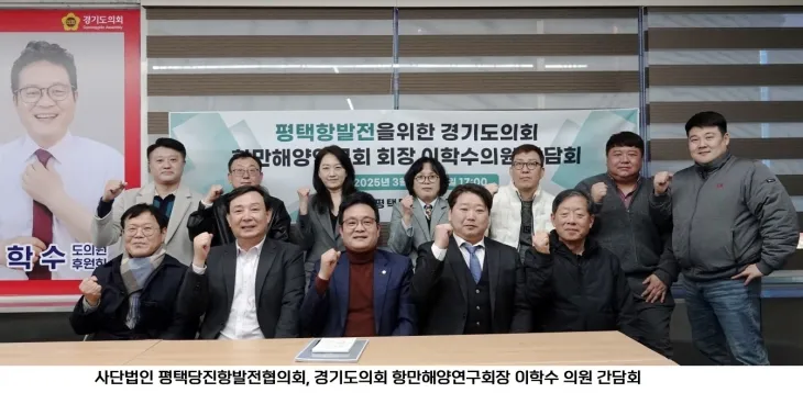 평택항 발전 위한 간담회 열려…이학수 의원 “제도적 지원 강화” 해양장·산분장 활성화 조례 개정 추진…평택항 미래 발전 방향 논의경기도의회 문화체육관광위원회 이학수 의원(국민의힘, 평택5)이 5일 해양수산부 소속 단체인 평택당진항발전협의회와 평택항 발전을 위한 간담회를 갖고, 평택항의 발전 방안을 논의했다.