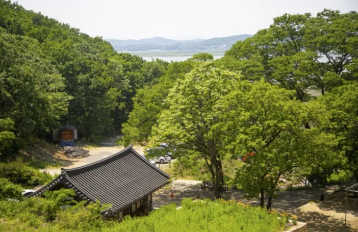 애초의 검단사는 왕릉의 원찰이었지만 지금의 검단사는 매우 소박하다. 검단사에서 가장 먼저 여행자를 맞이하는 건 300년 수령의 느티나무다. 둘레 1.5m에 이르는 느티나무 그늘에 놓인 벤치에 앉아있으면, 저만치 아래 한강과 북에서 내려온 임진강이 만나 유유히 흐르는 풍경을 볼 수 있다. 분단의 상처와 평화가 공존하는 고즈넉한 전경이다.