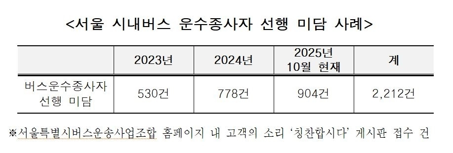 서울시버스운송사업조합 홈페이지 ‘칭찬합시다’ 게시판을 통해 승객과 시민들이 직접 올린 선행사례를 보면 ▲2023년 530건 ▲2024년 778건 ▲2025년(10월 기준) 904건으로, 최근 3년간 총 2212건에 달한다. 이는 시민의 안전과 불편 해소를 위해 묵묵히 헌신하는 버스운수종사자들의 노력이 점차 사회적 공감을 얻고 있음을 보여준다.
