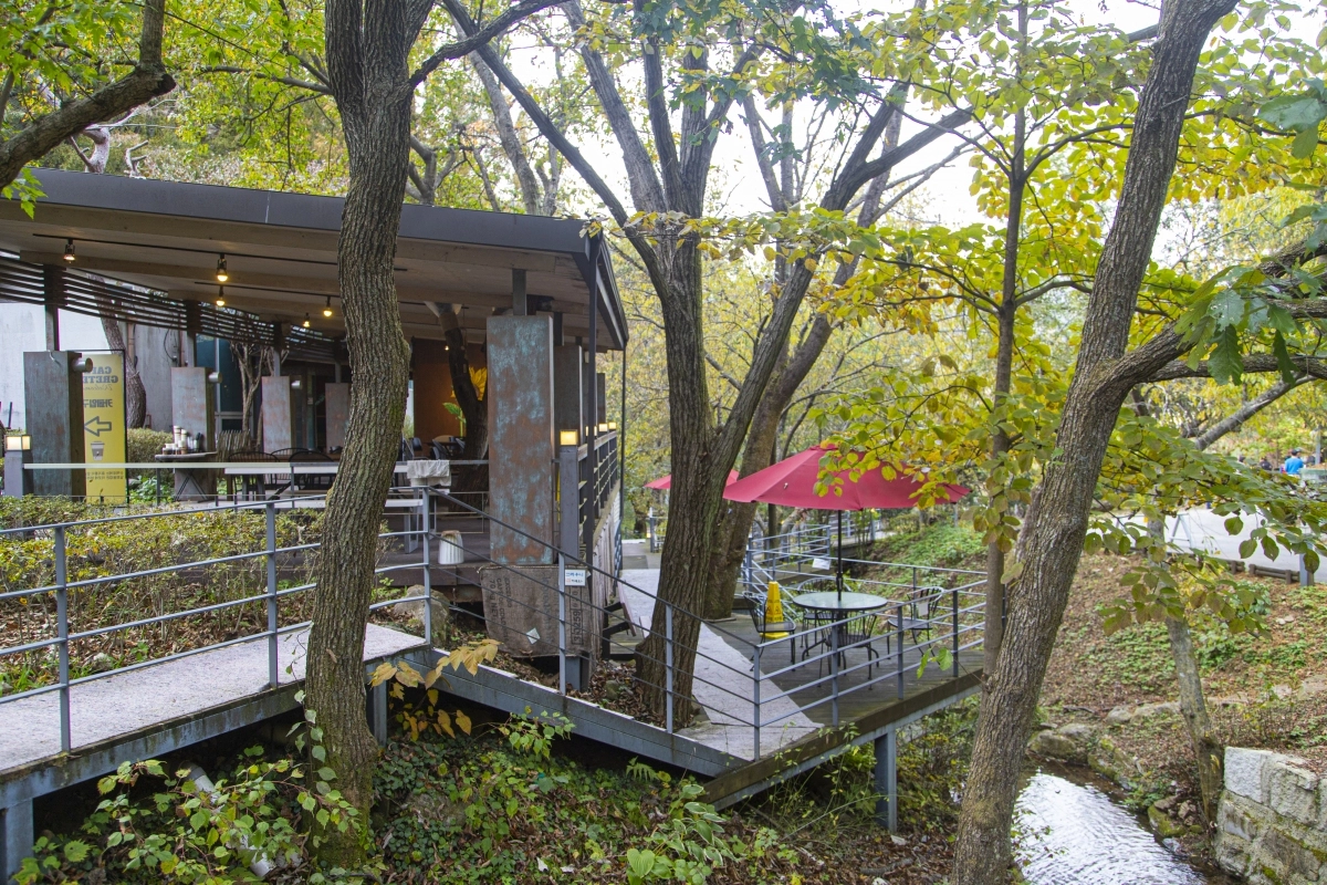 청평자연휴양림은 북한강과 청평호를 끼고 있다. 가는 길목부터 호수 옆을 따라 달리기 때문에, 차창 밖으로 반짝이는 물빛이 여행의 설렘을 더한다. 휴양림은 유료지만 입장권을 내면 휴양림 내 카페에서 음료 한 잔을 무료로 마실 수 있다. 카페는 숲과 계곡 사이에 자리하고 있어서 따뜻한 차 한 잔 마시다 보면 그 시간도 휴식이 된다.
