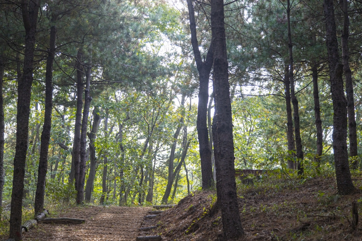 의정부 자일산림욕장은 개장 2년 차의 신생 산림욕장이다. 경기도에는 수십 개의 산림욕장이 있지만 자일산림욕장이 개장하기 전까지, 의정부에는 산림욕장이 없었다. 의정부 첫 산림욕장으로 지역 주민들의 손으로 만들어졌다는 점에서 더 특별하다. 개발제한구역과 군사시설보호구역으로 오래도록 묶여 있던 숲의 원형을 최대한 보존하며 산림욕장을 조성했다. 주민들의 손끝이 모여 그 어느 곳보다 따뜻한 온기가 느껴지는 산림욕장이 되었다. 입구에 들어서면 주민들이 직접 만든 포토존과 목공예품, 그리고 명판들이 방문객을 맞이한다. 하나하나에 ‘함께 만든 숲’의 이야기가 담겨 있다. 산림욕장은 두 개의 코스로 나뉜다. 수피길은 약 1.5km, 잣나무쉼터는 약 1km 코스다. 두 코스 모두 원형 형태라 숲을 걷다 보면 출발지로 되돌아오게 된다. 또한 두 코스가 붙어 있어 한 개의 길처럼 묶어서 산책을 즐길 수도 있다. 숲길 초반은 제법 가파른 오르막이다. 하지만 오르막을 지나면 완만한 경사의 숲길이 이어진다. 곳곳에 쉼터가 마련되어 있어서 산책과 동시에 휴식도 취할 수 있다. 일부 구간은 톱밥을 깔아놓아서 맨발로 걸으며 숲의 촉감을 느낄 수도 있다.