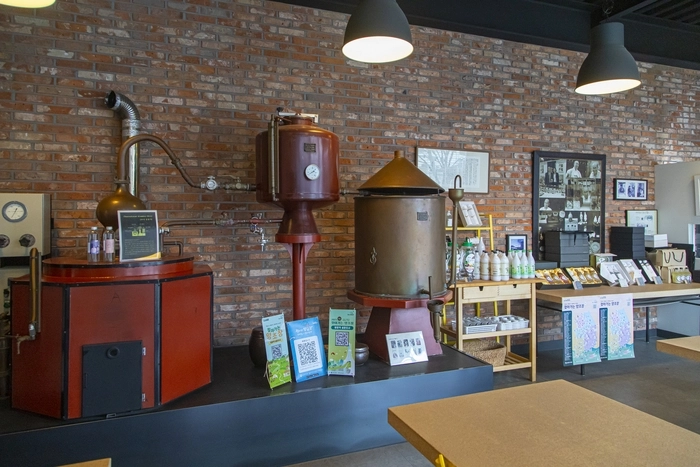 술지움은 잣을 모티브로 한 특색 있는 외관으로 눈길을 끈다. 삼각형 지붕이 겹겹이 이어진 모습은 현대적이면서도 독창적이다. 내부는 고급 카페나 와인바를 연상시키는 분위기에 세련된 공간으로 꾸며져 있어, 체험을 즐기는 손님들도 자연스럽게 기분이 들뜬다. 술지움의 매력은 체험프로그램이 매우 다양하다는 점이다. 막걸리뿐만 아니라 증류주와 뱅쇼는 물론이고 모주 체험까지도 가능하다. 술만들기 체험뿐아니라 막걸리 술빵 만들기, 막걸리 비누 만들기 체험으로 가족, 어린이 여행객에게도 추천할만 하다. 그 중에서 가장 인기 있는 체험은 막걸리와 증류주 체험이다. 증류주 체험은 양조장에서 생산한 막걸리를 사용한다. 1L 막걸리를 사용해서 약 150ml 증류주를 얻는다. 흥미로운 건 증류주가 떨어질 때 치자나 히비스커스 티백을 올려둔다. 치자를 쓰면 노란빛, 히비스커스를 쓰면 붉은빛을 띤 증류주가 만들어져 눈으로도 즐거운 체험이 된다. 완성된 증류주의 도수는 38~39도 정도다. 견학에선 전통주, 과실주, 증류주, 맥주 제조장이 각각 있어 다양한 술의 제조과정을 볼 수 있다. 비상시적이지만 교육프로그램에 등록해 술 제조 교육부터 소시지 만들기 과정까지 배울 수 있다. 술지움에서의 시간은 단순히 ‘술을 만드는 과정’을 넘어서, 새로운 색과 향, 그리고 시간을 함께 빚어내는 특별한 경험이 된다.