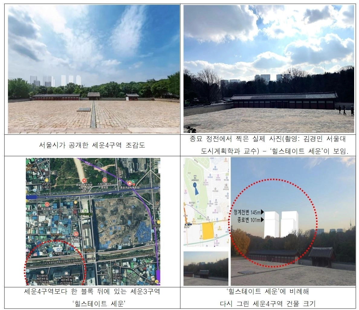 이어 “‘힐스테이트 세운’보다 훨씬 가깝고, 더 높은 145m 규모의 건물이 오 시장이 공개한 사진처럼 야트막하게 드러난다는 주장은 물리적으로 성립하지 않는다”고 강조했다.