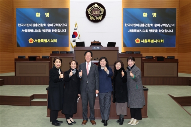 오후에는 한국어린이집총연합회 송파구가정어린이집연합회 회장단(회장 최미순) 5명이 의회 부의장실을 방문해 간담회 후 본회의장을 견학했다.